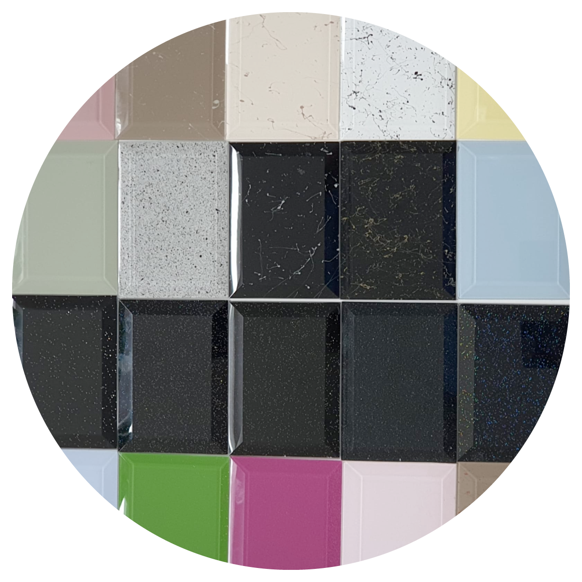 Wij hebben het grootste assortiment unieke, kleurrijke tegels, glas en spiegels van Nederland.